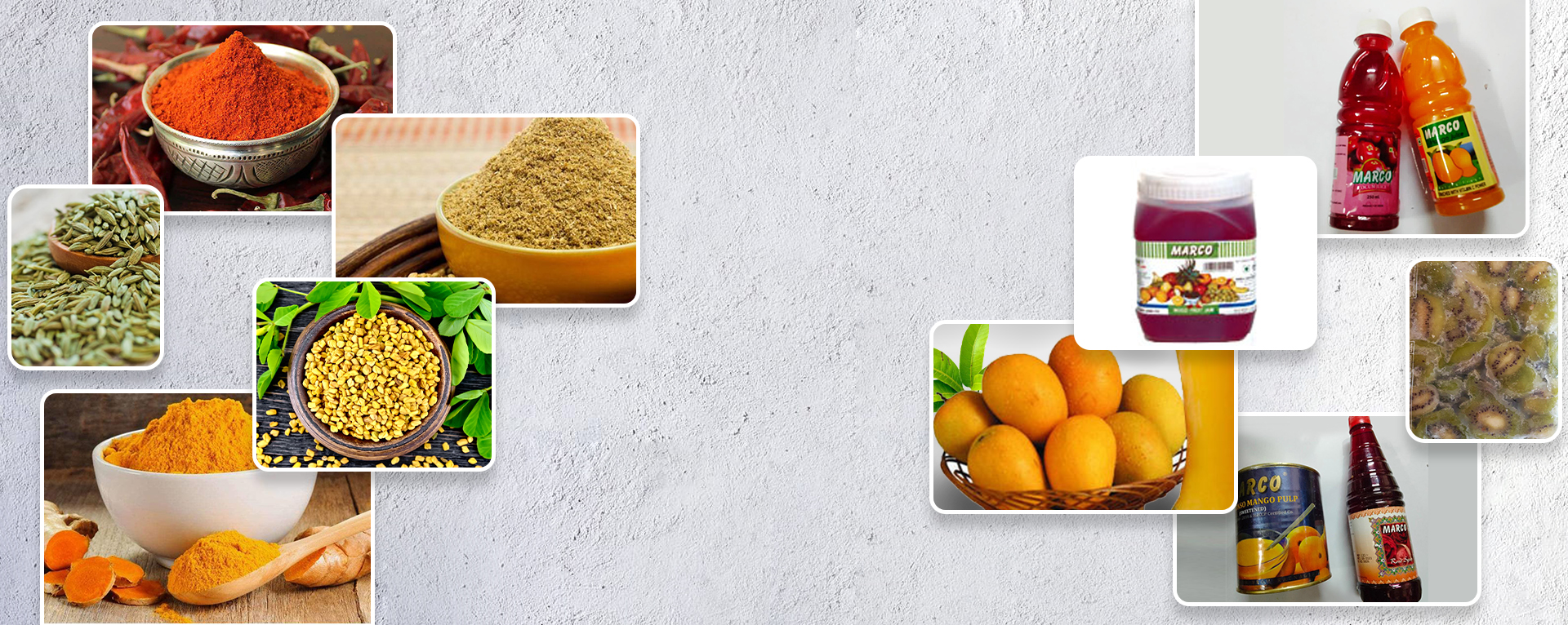 Marco is the favoured brand for spices and herbs, nuts, poppadoms, lentils, gram flour, grains, chutneys, seeds and more.